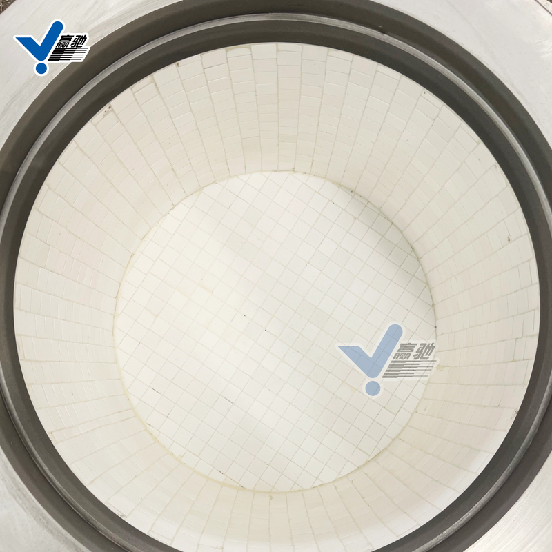 氧化铝陶瓷莫氏硬度 9 级,耐磨性是普通碳钢的20 倍以上,大幅延长罐体使用周期,减少停机维修。